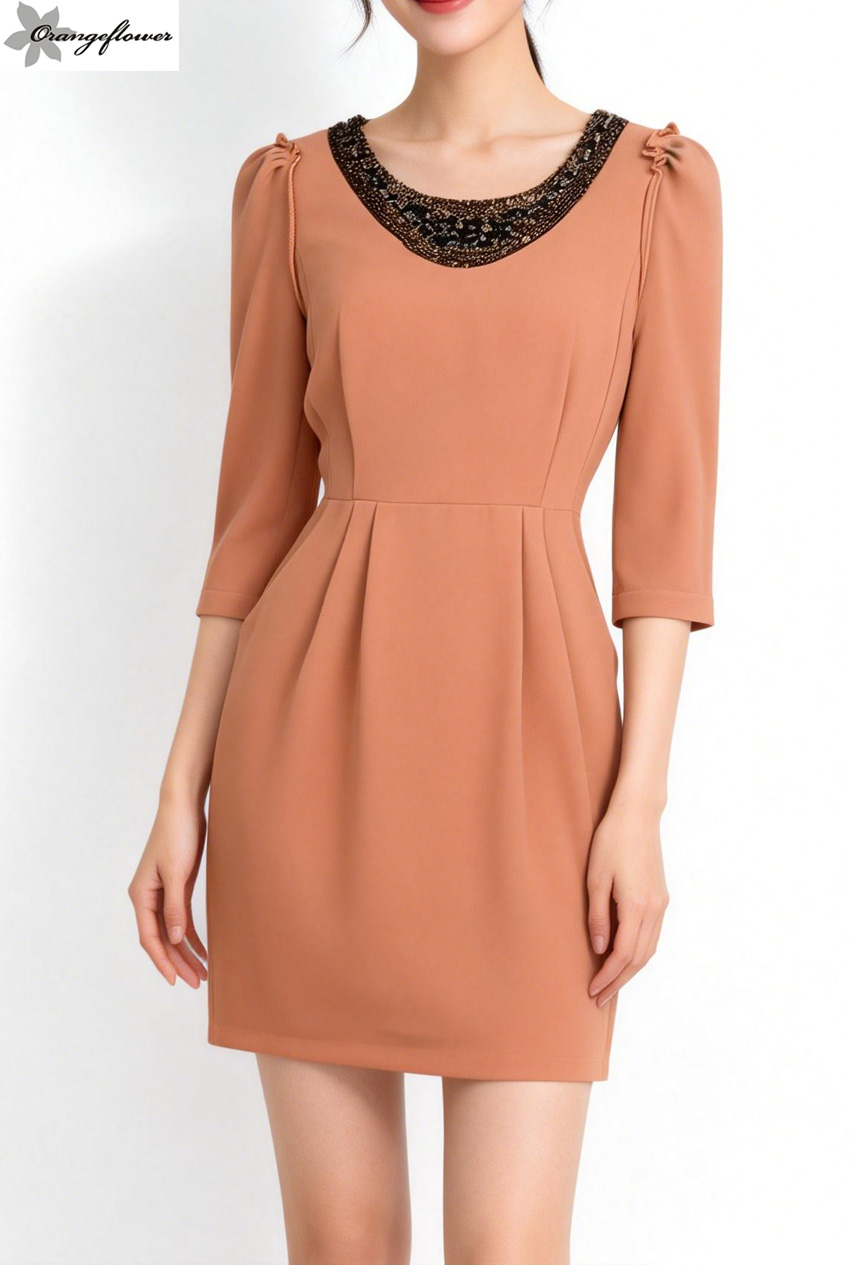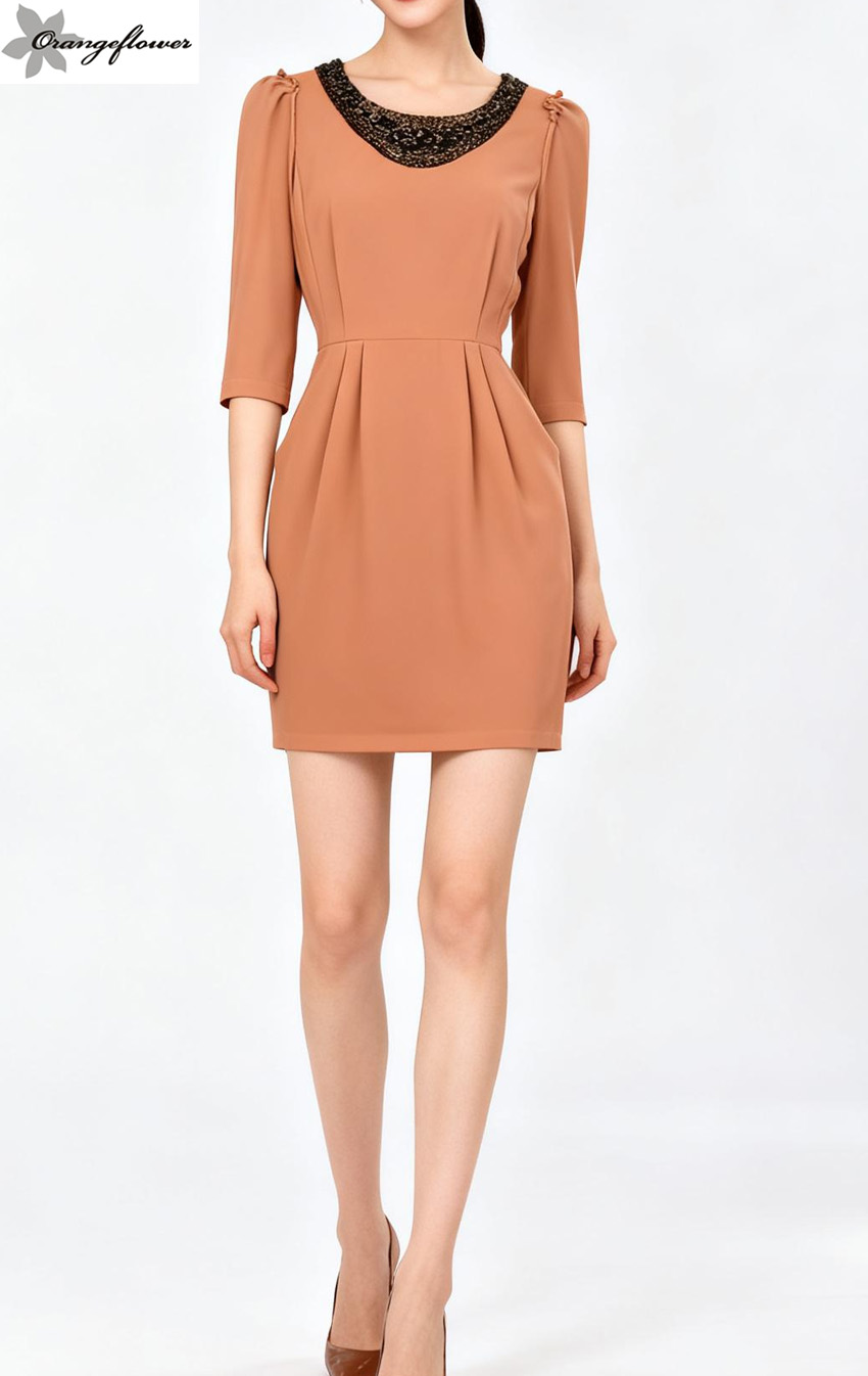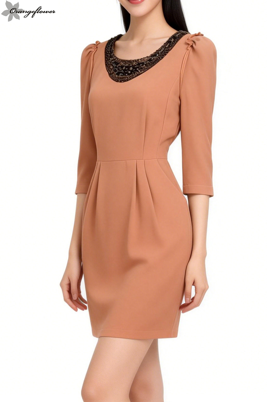orangeflower欧美风格时尚职场必备修身高级OL连衣裙